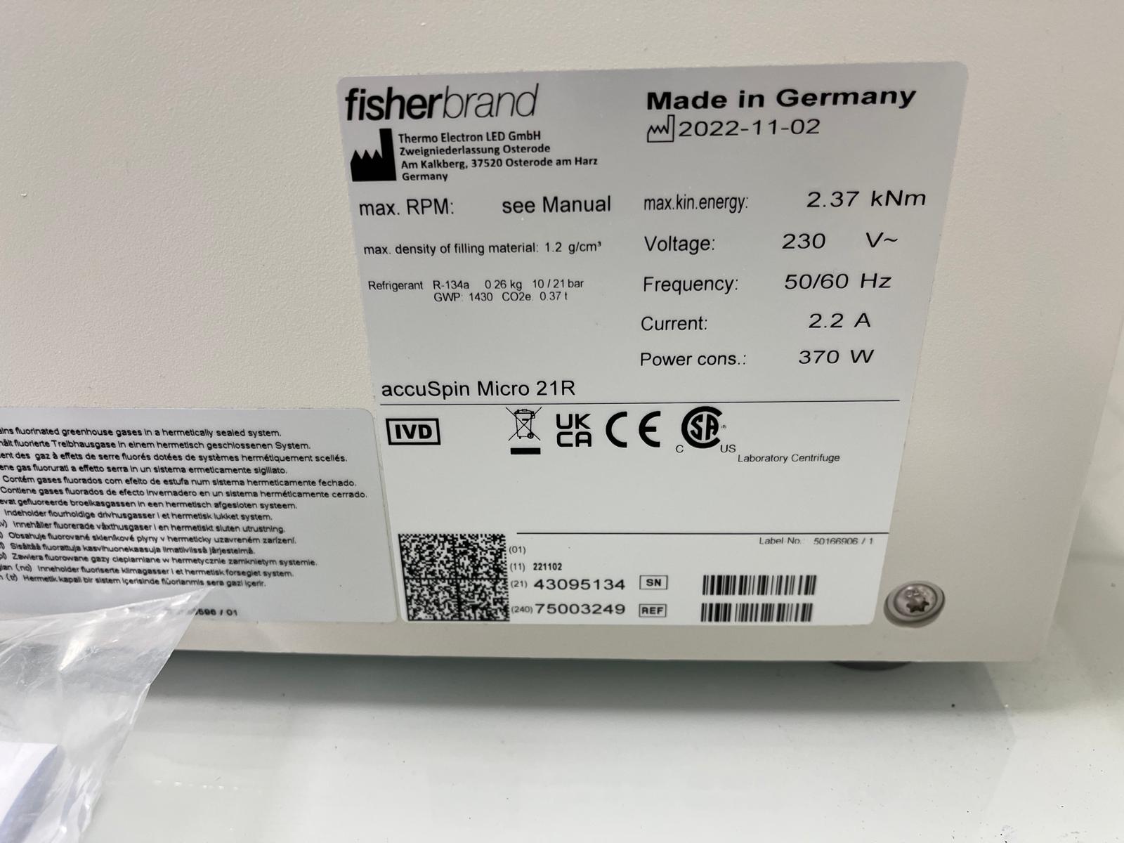 Centrifugeuse réfrigérée FISHERBRAND AccuSpin Micro 21R